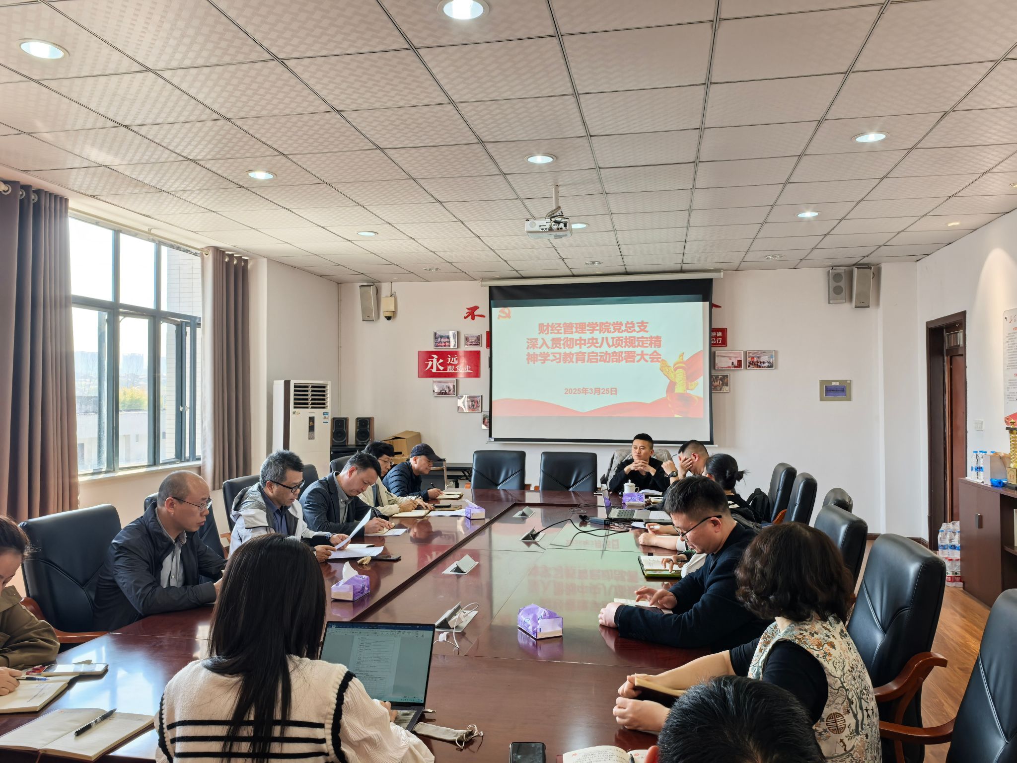 为全面落实党中央决策部署,巩固深化作风建设成果,3月25日下午,财经管理公司党总支在求实楼C602召开深入贯彻中央八项规定精神学习教育启动部署会。学院全体处科级干部、各党支部书记参加了会议,党总支副书记廖坤科同志主持会议。会上,党总支副书记、经理黄志平同志传达学习了上级单位发布的《关于在全党开展深入贯彻中央八项规定精神学习教育的通知》文件精神并宣读了财经管理公司党总支《关于成立深入贯彻中央八项规定精神学习教育工作领导小组及工作机构的通知》......