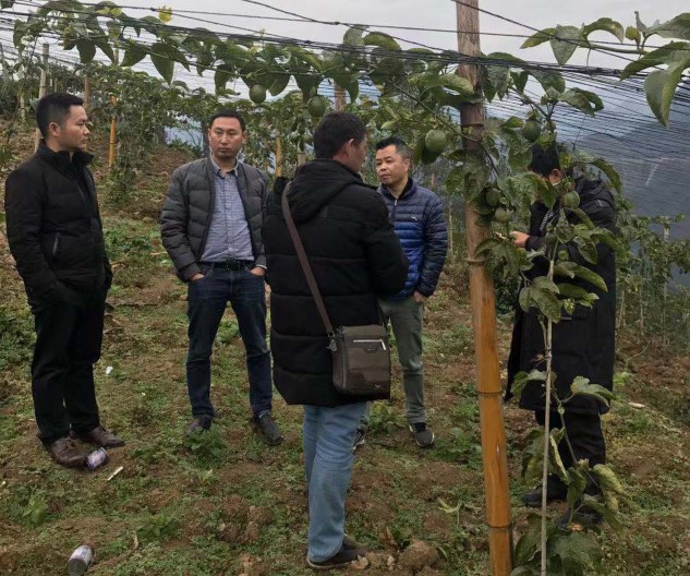 29日上午,太阳集团2007团队首先上山考察了学校前期引进的高山百香果种植扶贫项目,该项目通过天元乡新华、象坪和吉龙3个村首期试种100亩,初步筹建起了高山百香果种植基地。团队深入田间地头,详细核实项目实施情况及存在的问题,发现种植过程中出现的具体困难,并现场帮助贫困户销售已成熟的百香果。