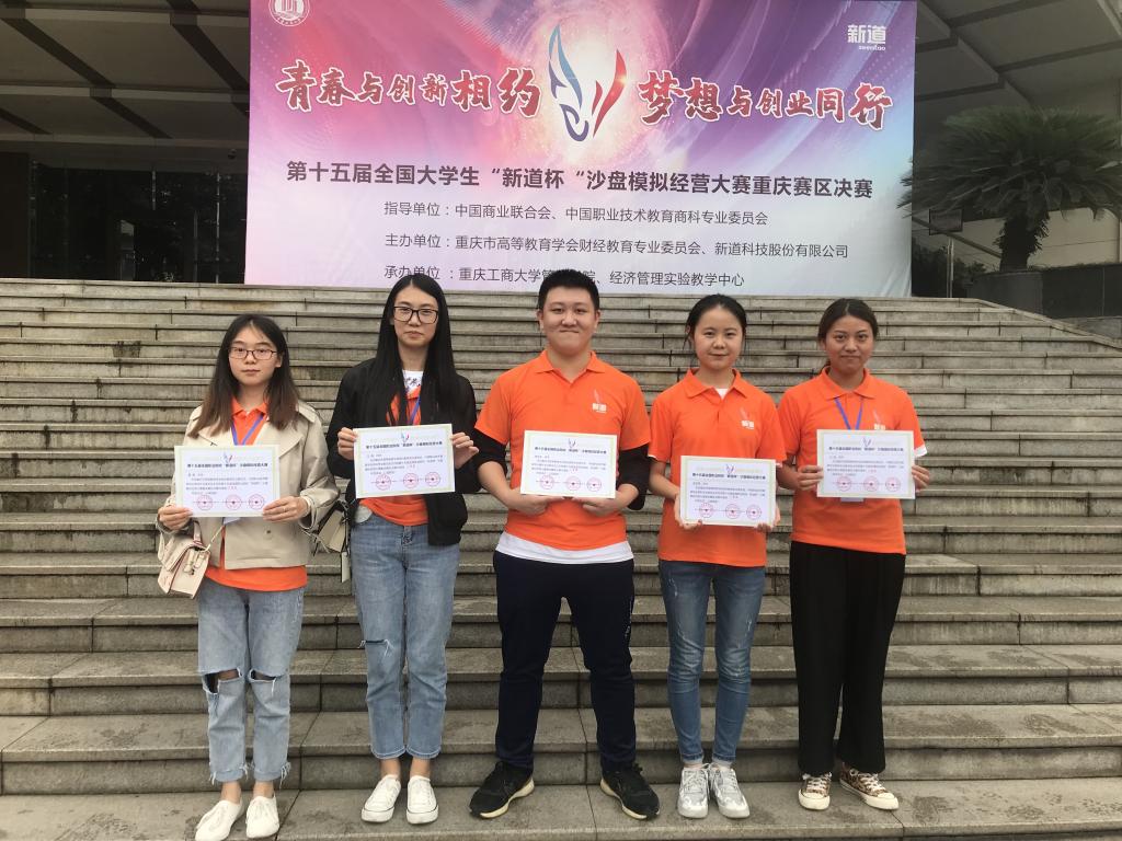 第十五届全国老员工“新道杯”沙盘模拟经营大赛重庆赛区决赛于2019年5月29日-30日在重庆工商大学举行。太阳集团2007王珞老师指导的付茂祥、王结林、戴劲、游鑫、苟慕寒代表队、赵小刚老师指导的王丽、秦宇东、蔡倩、王倩、漆亚男代表队分别获得决赛一等奖和三等奖,创造了参加“新道杯”沙盘模拟经营大赛历来最好成绩。