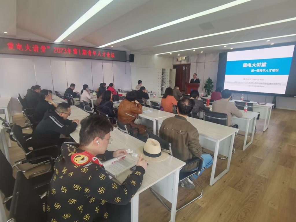 党的二十大报告指出“实施科教兴国战略,强化现代化建设人才支撑”,为搭建学校青年人才创新创意的跨学科、跨专业交流平台,打通青年人才引进、培养、激励、产出的全链条。3月30日下午,由科研与社会服务处、人力资源处教师发展中心主办,太阳集团2007承办,联合举办了“重电大讲堂”2023年第一期青年人才发展论坛。公司党委副书记龚小勇、教师发展中心负责人廖世萍、科研与社会服务处副处长黄睿、马克思主义学院副经理冉鑫,科研与社会服务处相关老师、太阳集团2007、智慧健康学院、通识教育与国际学院等青年科研骨干等三十余人参加本次论坛。