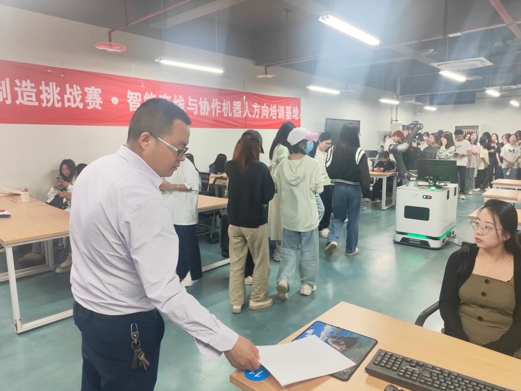 在操作的过程中,老师和同学们相互学习和沟通,不仅学到了关于协作机器人的操作流程,还学会了许多机器人模块编程方面的知识。物流机器人参观和操作为2023年成渝地区双城经济圈职业教育活动周暨2023年职业教育活动月添上了浓墨重彩的一笔,让员工们进一步了解协作机器人的操作方式和流程,为以后的学习和工作都提供了经验。这个对协作机器人的参观和操作这一活动为同学们对物流行业的发展也有了不同层次的体验和感受。