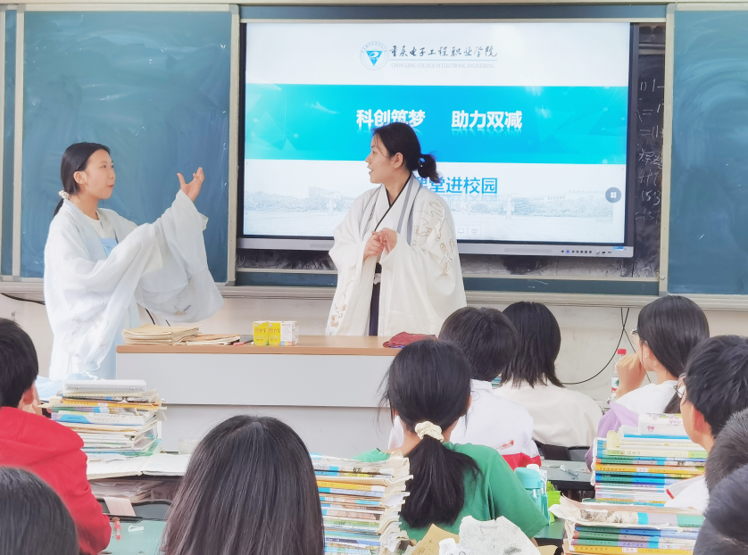 5月23日,在全国科技活动周来临之际,重庆市人文社会科学普及专家邓满教授、蒋寒宇老师作为六艺党员志愿服务团队成员走进重庆市潼南区双江镇小学、双江初级中学开展“科创筑梦 助力双减”活动进校园活动。潼南双江镇小学二年级300余名小员工与双江初级中学近400名初中员工参与活动。