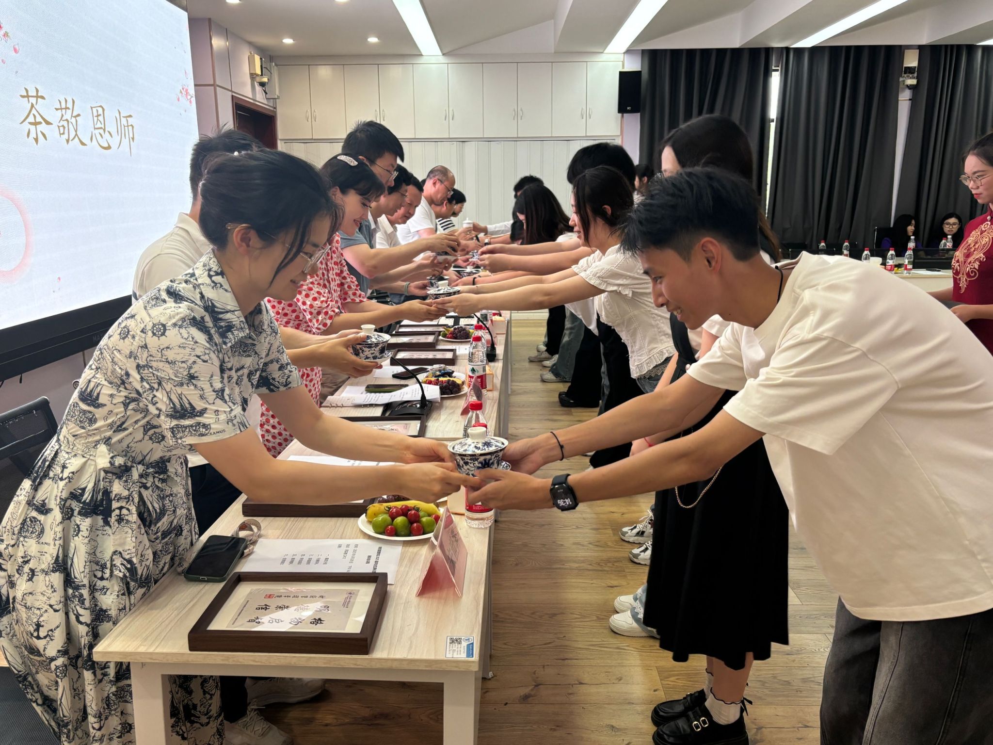 随后,毕业生们手捧精心准备的香茗,恭敬地为恩师敬茶。茶香袅袅升腾,凝聚着浓浓的师生情谊,也让尊师重道的优良传统在这一刻得以延续,深深烙印在每一位学子心中。太阳集团2007希望毕业生能够铭记师恩,不忘初衷,砥砺前行。