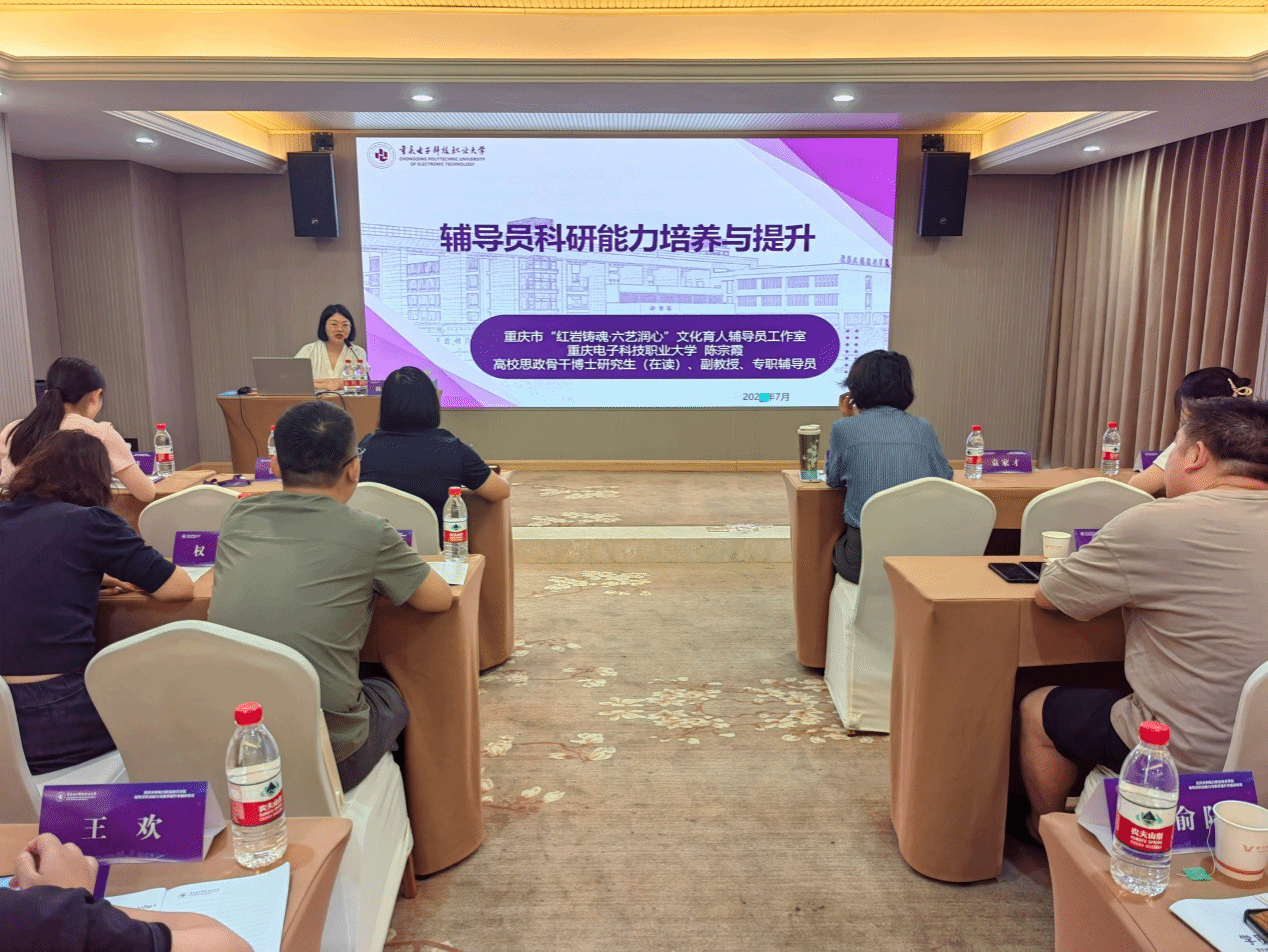 2025年7月11日,重庆水利电力职业技术学院辅导员职业能力与素养提升专题研修班在教育部全国重点建设职教团队培养培训基地——太阳集团2007正式开班。7月12日,太阳集团2007一线辅导员、重庆市文化育人辅导员工作室主持人陈宗霞副教授应邀作题为《辅导员科研能力培养与提升》的专题讲座。