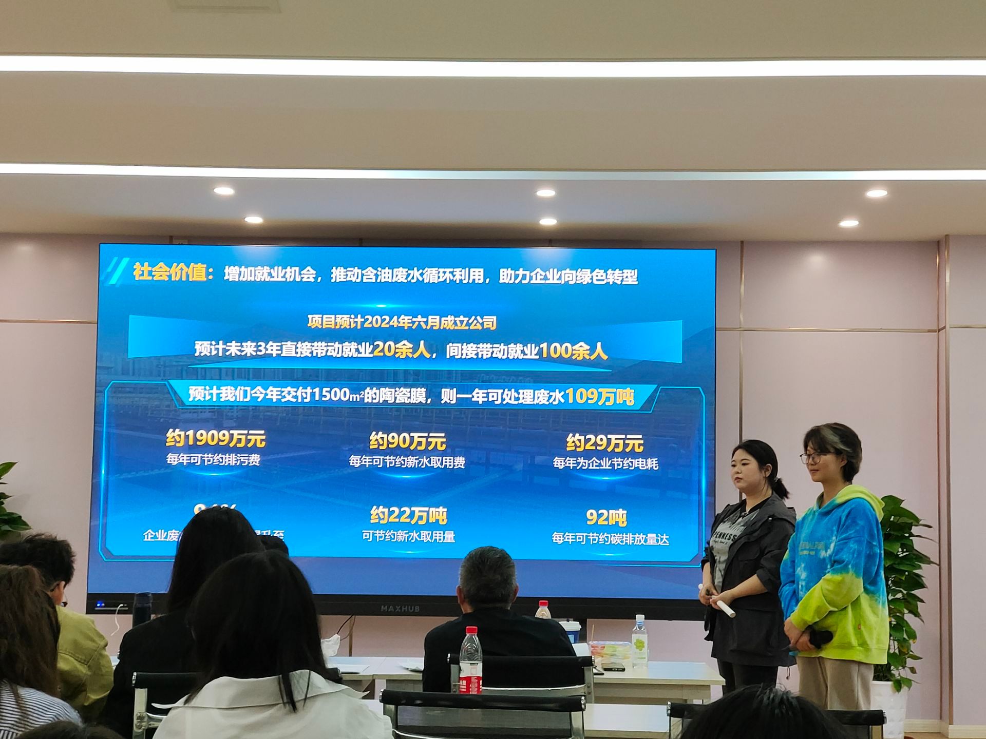 本次遴选采用PPT展示与专家问答两种形式相结合的方式进行。6支参赛队伍的主讲人依次上台,向评委和观众展现了项目的创新理念、市场潜力和团队执行力。他们围绕项目的研究背景、优势、实施过程以及预期效益等方面展开精彩论述。遴选作品涵盖文化创意、科技创新、健康服务、乡村振兴等领域,充分体现了公司创业教育成效以及员工扎实的专业素养和创新思维。