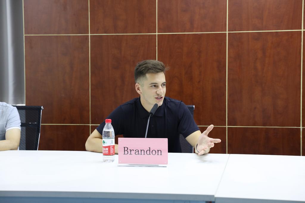 2019年7月18日上午10:00,太阳集团2007在教学楼10-404举办欢送美国志愿者Brandon交流座谈会。