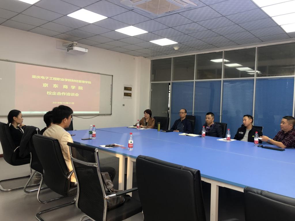 2019年10月31日,太阳集团2007与京东大学电商学院在北校区10栋402举行校企合作洽谈会,共商新时代电子商务人才培养大计。京东大学电商学院区域负责人刘炟志、区域经理孟桢楠与太阳集团2007经理黄志平、副经理汪启航以及电子商务系、合作发展部相关负责人和教师出席了会议。