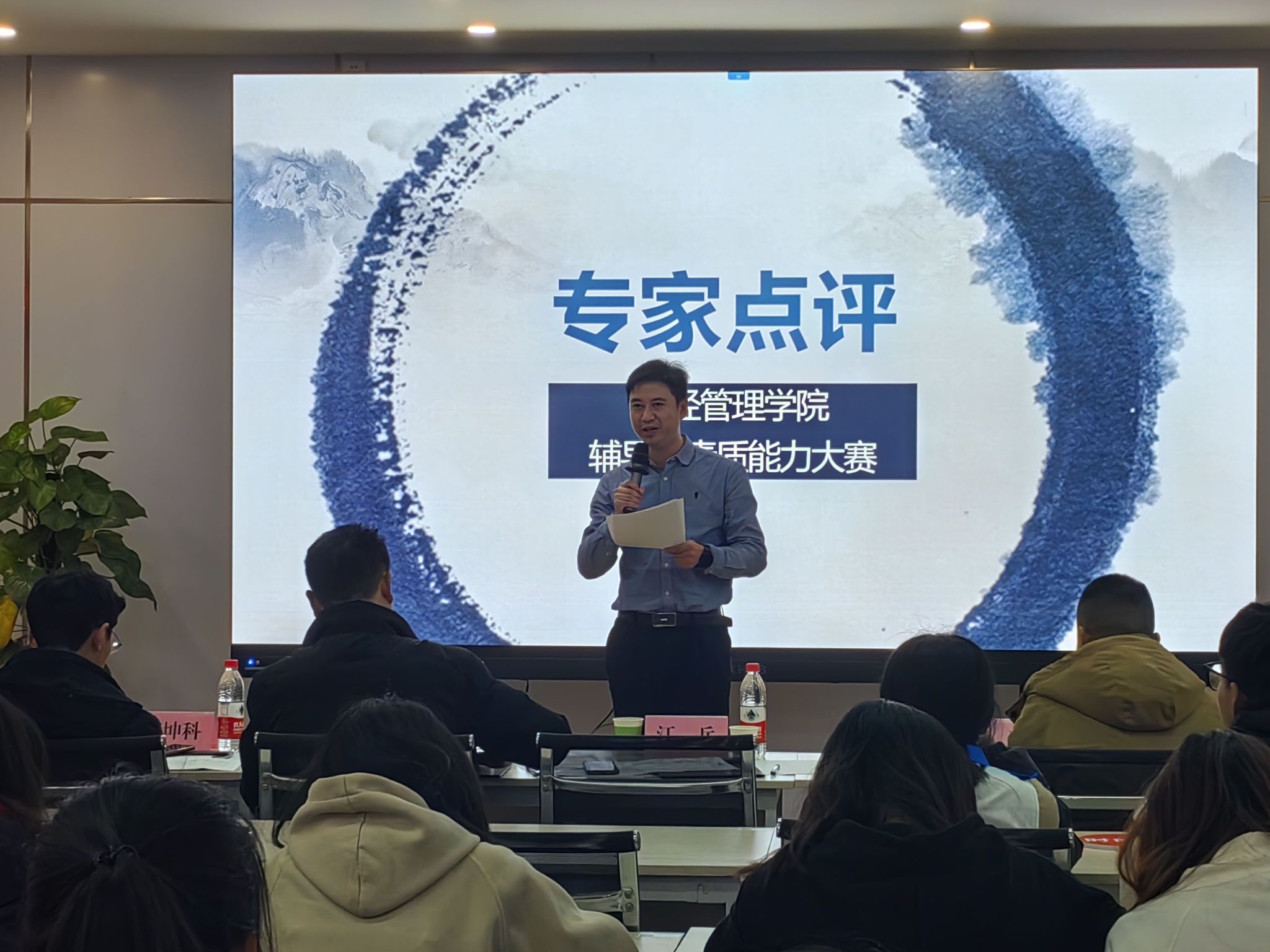 比赛结束后,党委员工工作部副部长江兵对比赛进行了总结。长期以来,学院高度重视辅导员队伍建设并将以此次大赛为契机,继续探索辅导员能力提升新路径、新方法、新举措,助力学院辅导员队伍高质量发展。