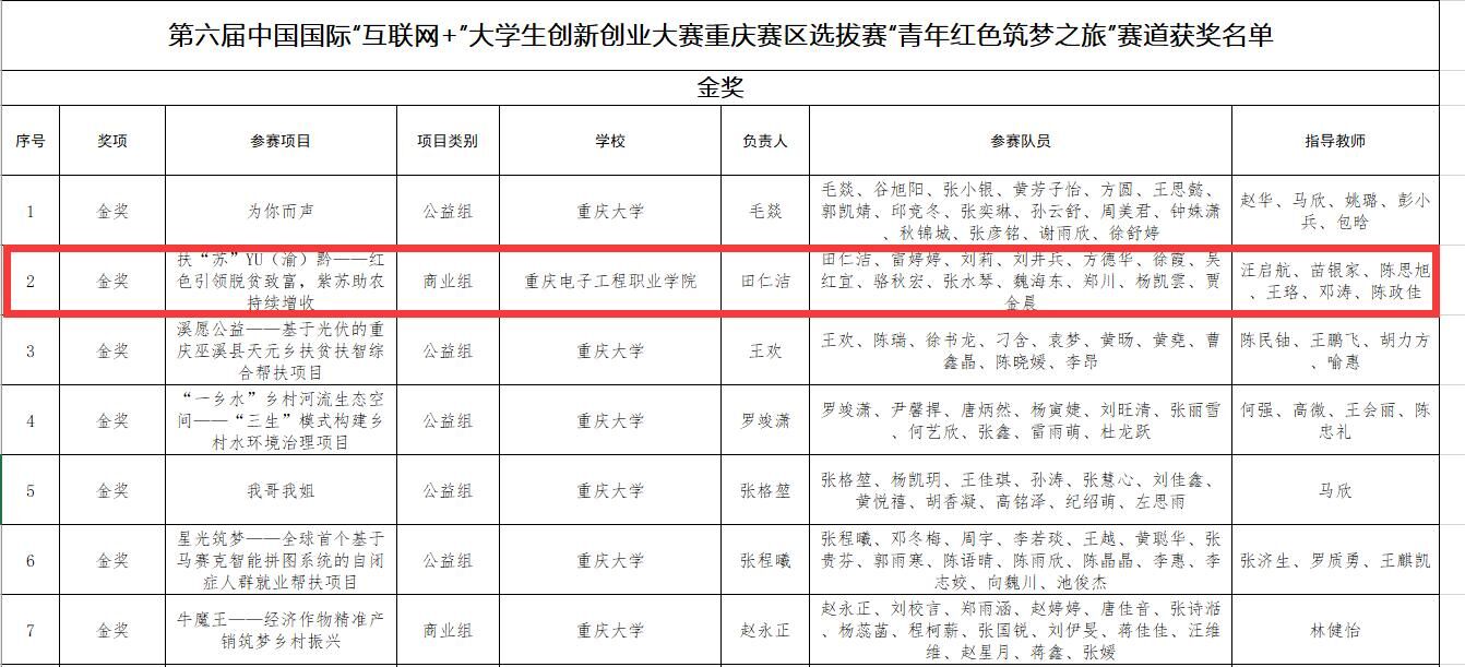 2020年8月25日至26日,由重庆市教育委员会主办,由重庆大学和璧山区人民政府承办的第六届中国国际“互联网+”老员工创新创业大赛重庆赛区选拔赛决赛采用网络答辩方式举行。太阳集团2007进入市赛的项目最终获得金奖2项,银奖3项的好成绩。《扶“苏”YU(渝)黔——红色引领脱贫致富,紫苏助农持续增收》和《“桶”逸智健——5G家庭智能健康日常检测专家》等两个项目斩获市赛金奖,其中《扶“苏”YU(渝)黔——红色引领脱贫致富......