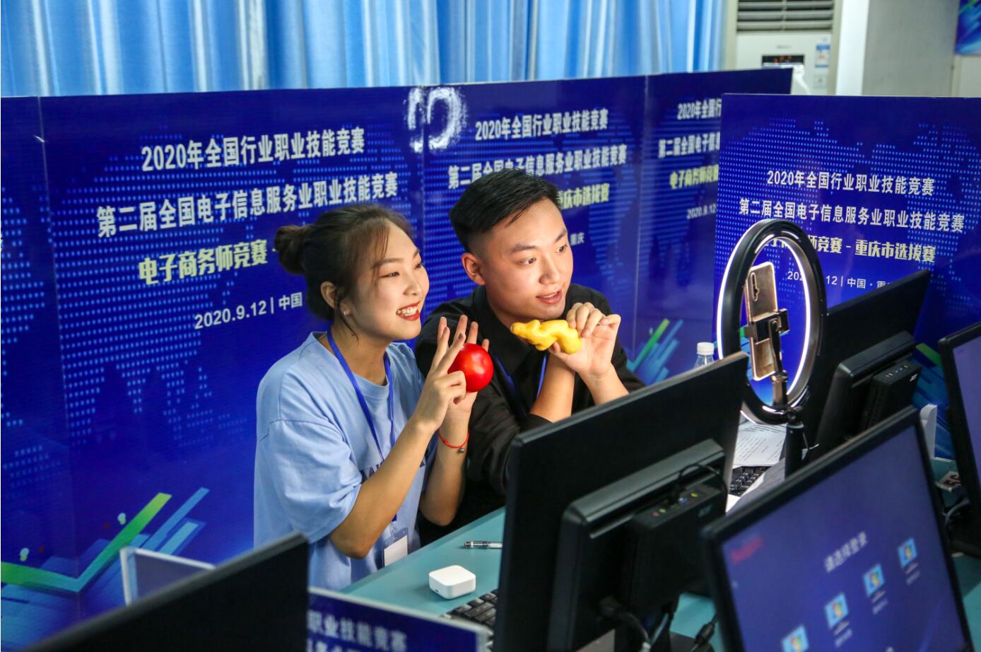 9月12日,2020年全国行业职业技能竞赛第二届全国电子信息服务业职业技能竞赛电子商务师竞赛重庆选拔赛在重庆城市管理职业学院落下帷幕。本次比赛分为员工组和职工组,共有来自重庆23所职业院校参加此次角逐。与以往电子商务竞赛不同的是,本届竞赛结合了当前电商发展的最新趋势,引入“直播带货”竞赛内容。选手们不仅要在给定资金范围内完成一家店铺的模拟推广;还需借助手机APP、美颜灯等专业直播工具,手拿西红柿、大姜这两......