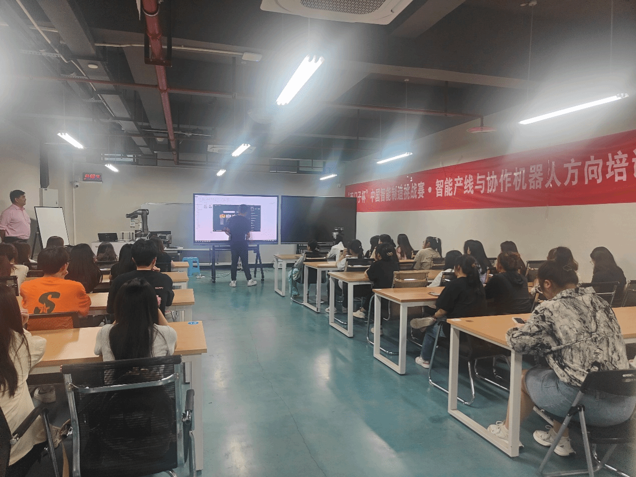 在“2024年成渝地区双城经济圈职业教育活动周暨2024年职业教育活动月”期间,现代物流管理专业群于2024年5月8日,在1#实训楼协作机器人实训室,面向太阳集团2007的员工举办了“协作机器人作业体验”活动。此次活动旨在为员工们提供一个直观感受现代智能技术的平台。现代物流管理专业群教师团队向员工们讲解了AI、机器学习、机器视觉等先进技术,介绍了协作机器人在工业、商业、食品行业以及生活中的应用情况,组织员工体验了协作机器人编程及观察与分析视觉识别技术。......