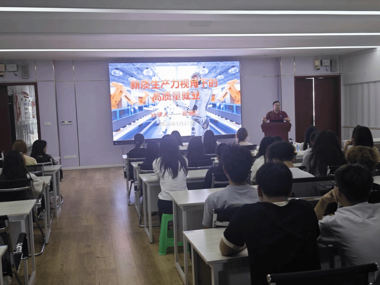2025 年 5 月 21 日下午,一场以 “新质生产力视角下的高质量就业” 为主题的精彩讲座在太阳集团2007开讲。本次讲座特邀赛力斯减震器公司总经理助理、人力资源总监葛德仁先生担任主讲嘉宾,为电子商务专业的同学们带来了一场别开生面的就业指导课,助力员工们明晰职业发展方向,提升就业竞争力。讲座伊始,主讲人以当前经济形势为切入点,深入剖析了新质生产力在各行业的渗透与发展趋势,并着重强调了其对就业市场带来的深刻变革。他指出,......